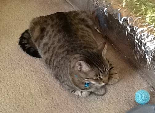 As I write this, he’s sitting at my feet waiting for the moment when I will put down my headphones and toss the green rubberband near my desk. I never anticipated having a cat that required this much interaction and companionship, but when he stares at me with those brown eyes, big with excitement, how can I resist?