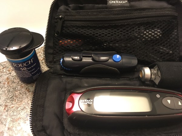 2. It houses my glucometer, lancet device, lancets, test strips and – because I like to pack light and be prepared – a syringe and insulin vial.