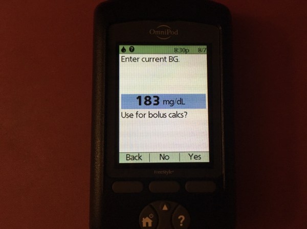 9. I plug my reading into Gizmo 2.0 (my insulin pump) to see if I need a correction dose (normal blood sugar ranges from 88-120).